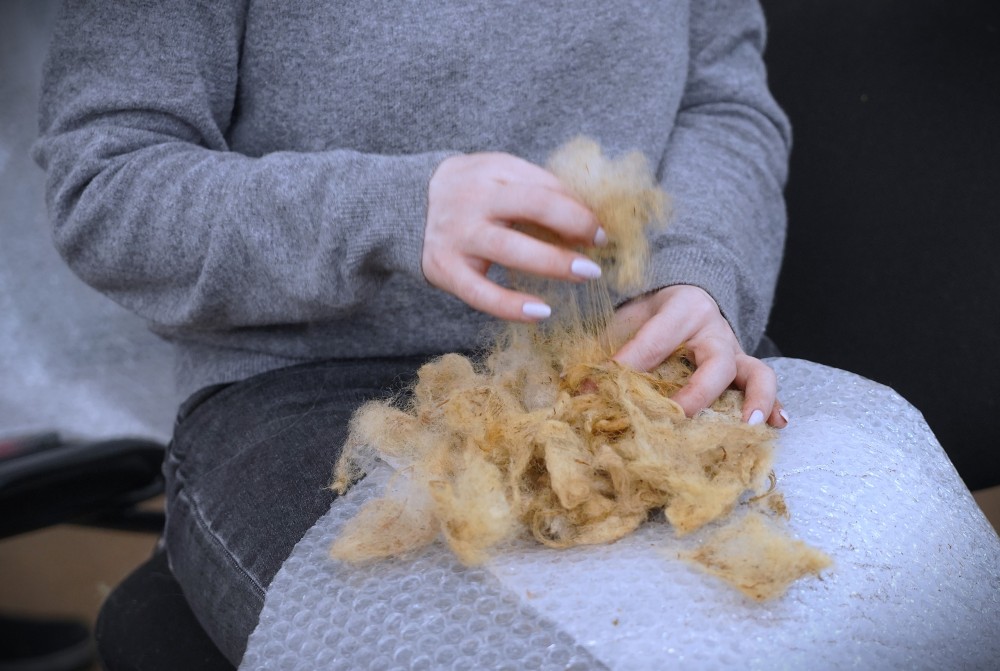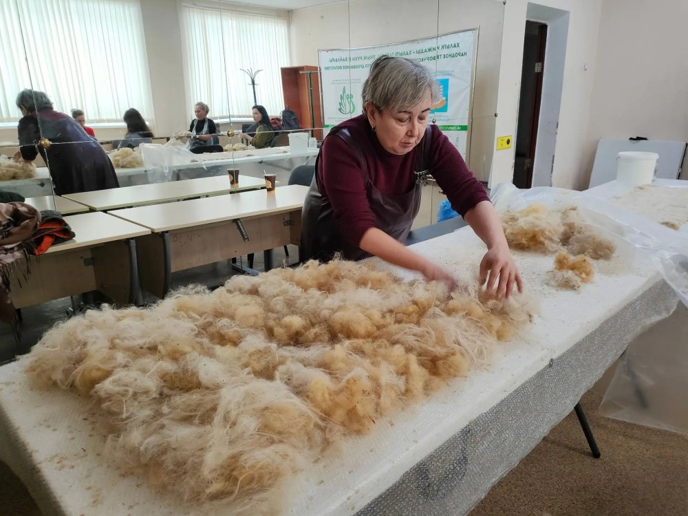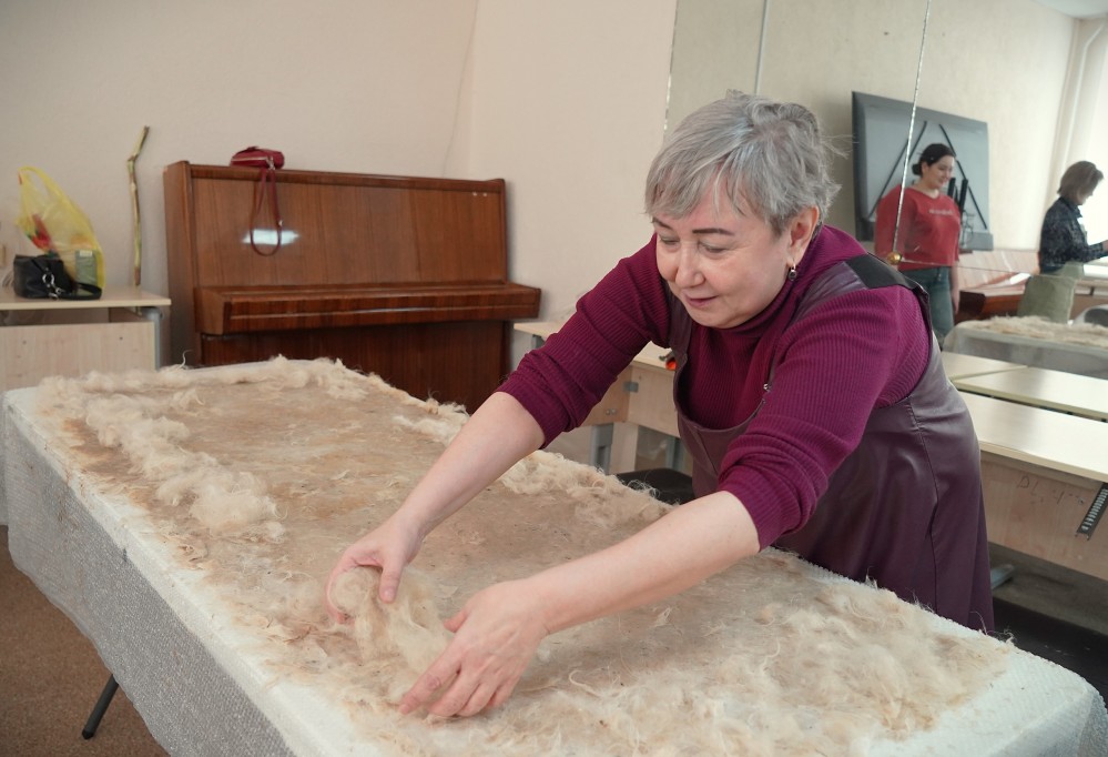 Прежде чем приступить к валянию, наши мастерицы тщательно подготовили шерсть: перебирали, очищали от мусора, вкладывая заботу в каждый комочек.