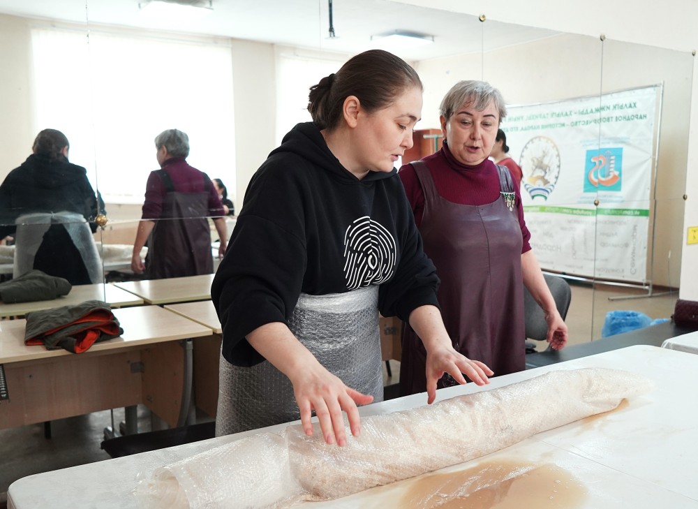 На днях в Культурном центре «Атайсал» царила особая, душевная атмосфера. Сотрудники Республиканского центра народного творчества провели благотворительную акцию по изготовлению войлочных поясов для участников СВО.