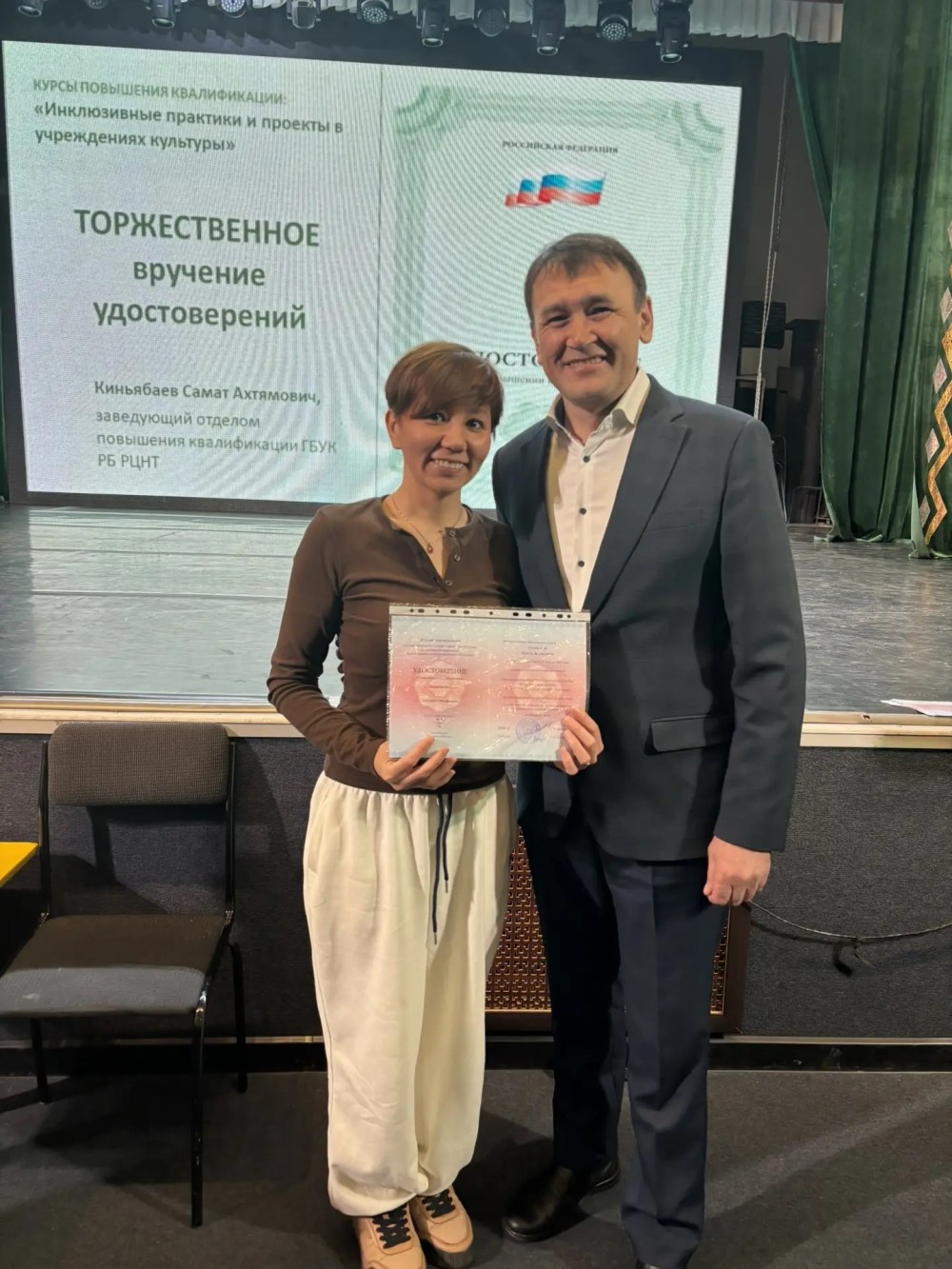 Кульминацией третьего дня стало торжественное вручение удостоверений о повышении квалификации. Это стало официальным подтверждением новых знаний и навыков, полученных участниками. Ярким дополнением к насыщенной программе обучения стала экскурсия в театры республики.